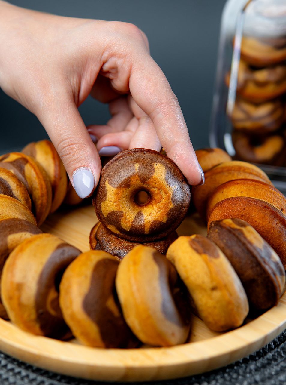 و بخش جذاب ماجرا؟ دیزاین ماربل روی دوناتهاست. ترکیبی از رنگهای طبیعی و طرحهای چرخان که شیرینی را به یک اثر هنری تبدیل میکند.
