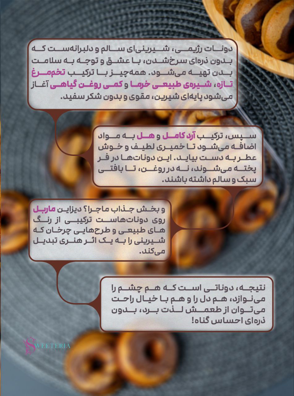 نتیجه، دوناتی است که هم چشم را مینوازد، هم دل را و هم با خیال راحت میتوان از طعم شیرینش لذت برد، بدون ذرهای احساس گناه!